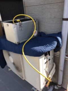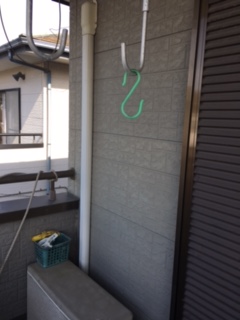 室外機の設置が1台は一見屋根置きに見えますが、既存の壁面架台を利用してあります。