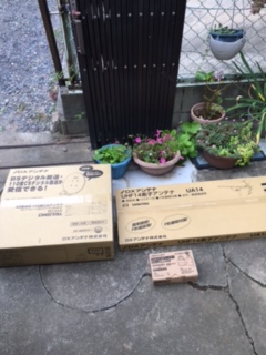 DX社の 地デジUHF、BSアンテナ、混合ブースターの3点セットです。