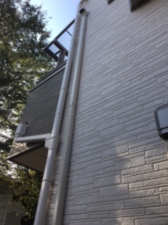 室内機は2階、室外機1階で梯子を使って配管を立ちおろし。
