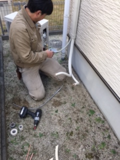 大事なお家の壁の穴開けもプロのエアコン屋さんが筋交いや柱をしっかりとかわします!