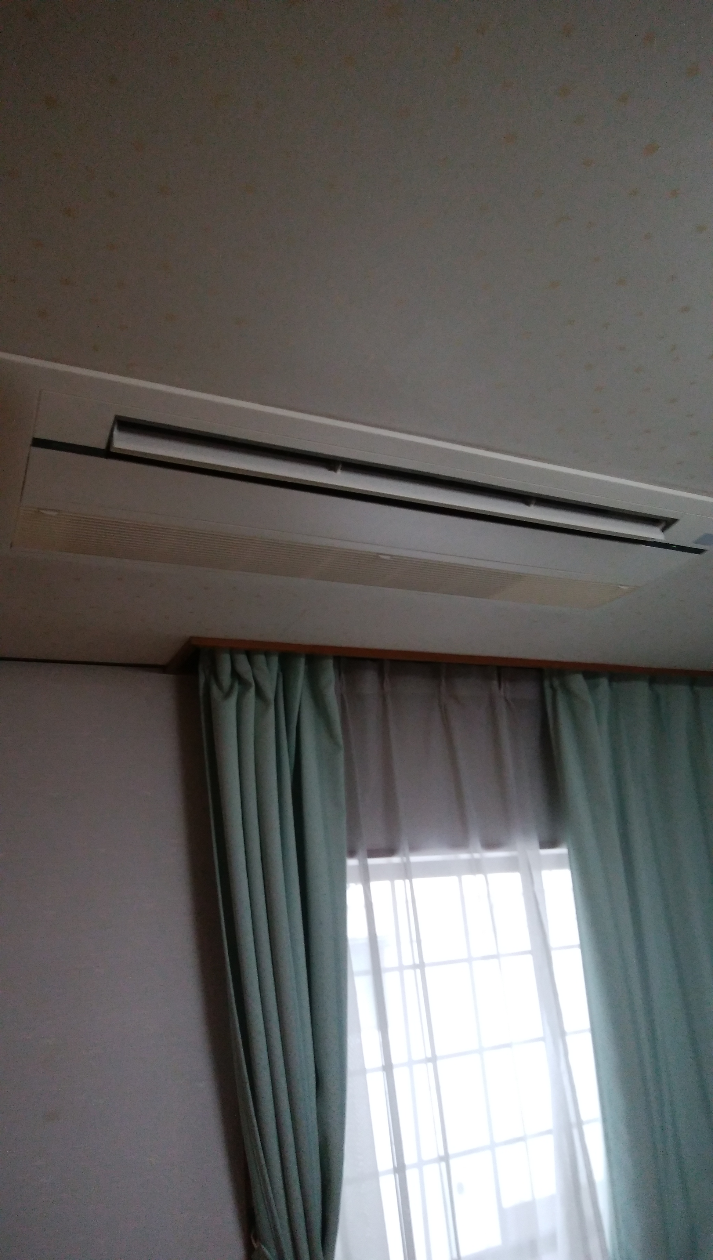 本日は埼玉県鴻巣市本町のS様のお宅でダイキンの天井埋め込みカセット形のハウジングエアコン(ダイキン社のS28RCV)入れ替え工事を行いました。