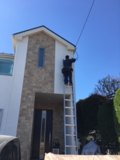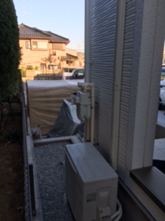 エアコン工事は梯子作業が角度がなく難工事でしたが頑張って完了させました。