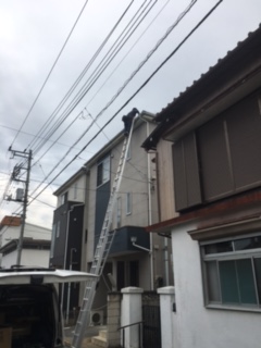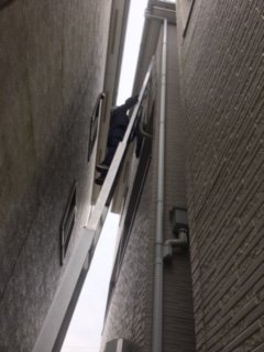 3階のエアコン工事も傾斜がきついですがベテラン職人の次郎さんは恐れず登っていきます。