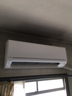 春日部市増富でお客様がネット通販でご購入されました、三菱の5,6kwの霧ヶ峰の取付工事を行いました。
